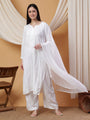 A sophisticated three-piece set featuring ombre-dyed fabric beautifully enhanced with delicate Chikankari embroidery.