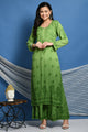 Authentic Handwork Chikankari Embroidery on soft modal cotton fabric, heavy Daman work & pretty bootas all over the piece. Comes with matching pallazo. Ombre Shaded naturally dyed in peacock green color.
