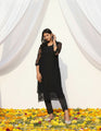 Black long Georgette kurti allover chikankari handwork in Paisley and Floral intricate pattern on soft and flowy fabric.